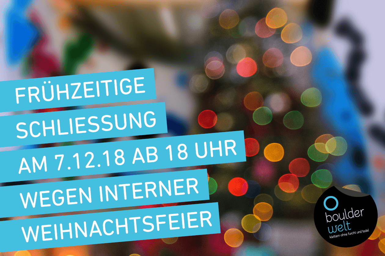 Frühzeitige Schließung der Boulderwelt München Ost um 18 Uhr am 7.12.2018 wegen interner Werihnachtsfeier.