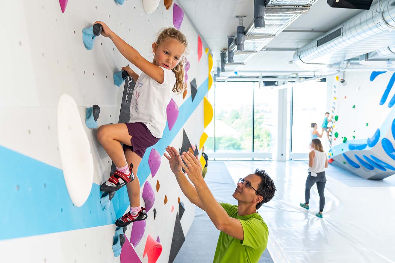 Bouldern und Klettern für die ganze Familie in der Kinderwelt der Boulderwelt München Ost