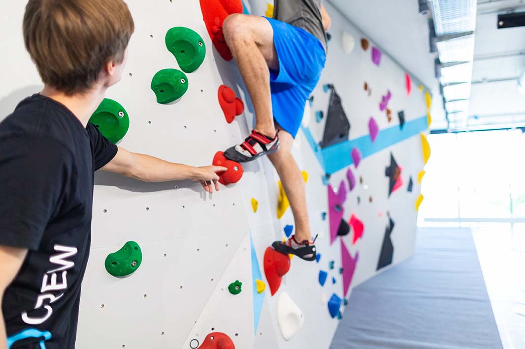 Erste Techniken fürs Bouldern und Klettern lernen im Grundkurs mit Trainer der Boulderwelt