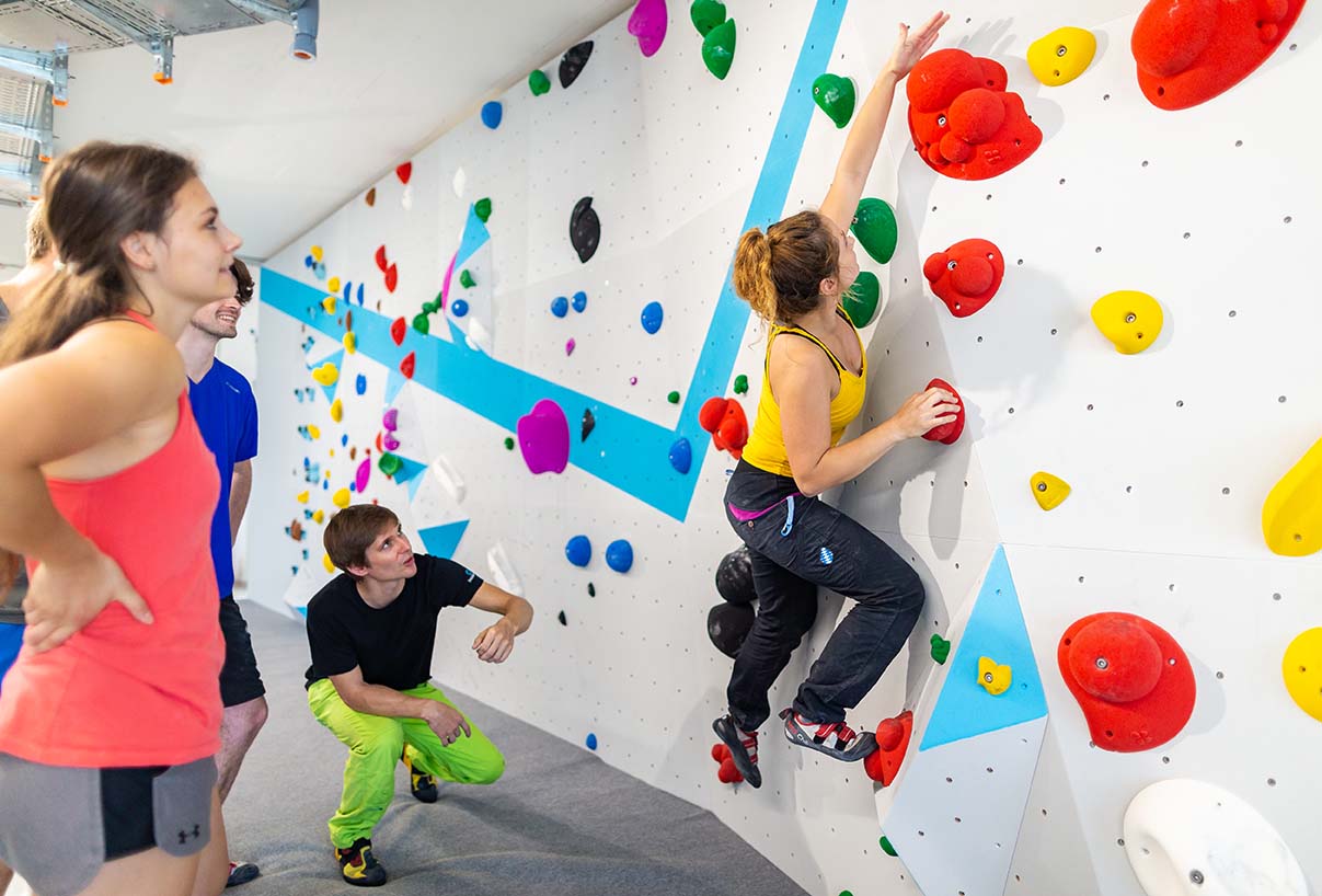 Erste Techniken fürs Bouldern und Klettern lernen im Grundkurs mit Trainer der Boulderwelt