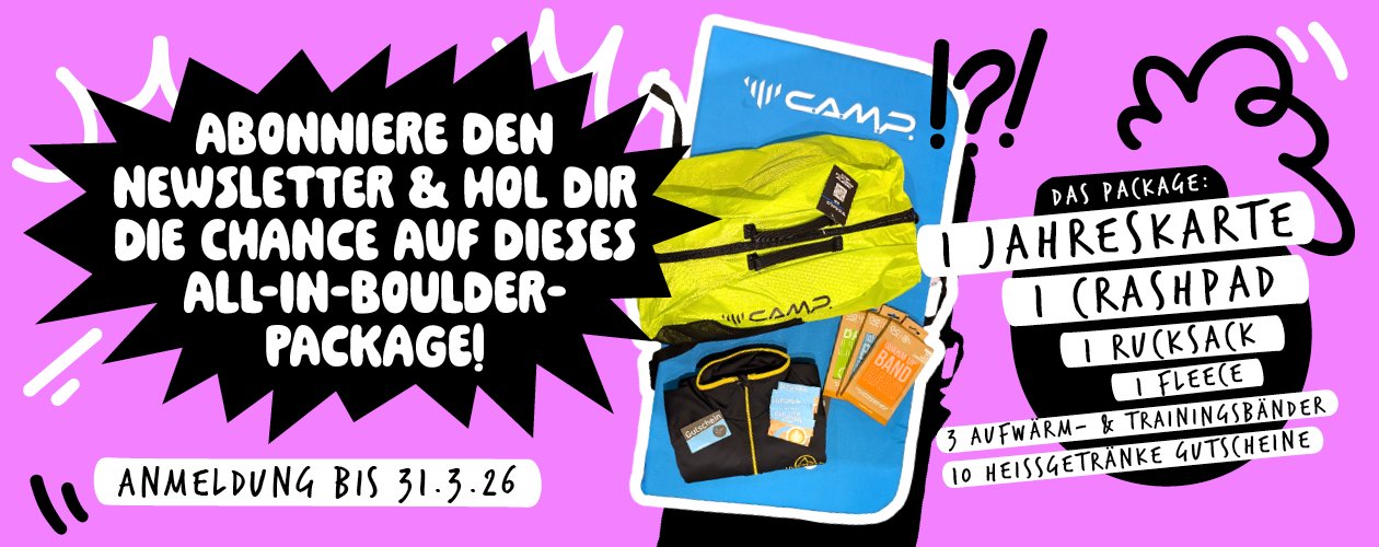 Newsletter abonnieren und exklusives All-in Boulderpackage gewinnen!