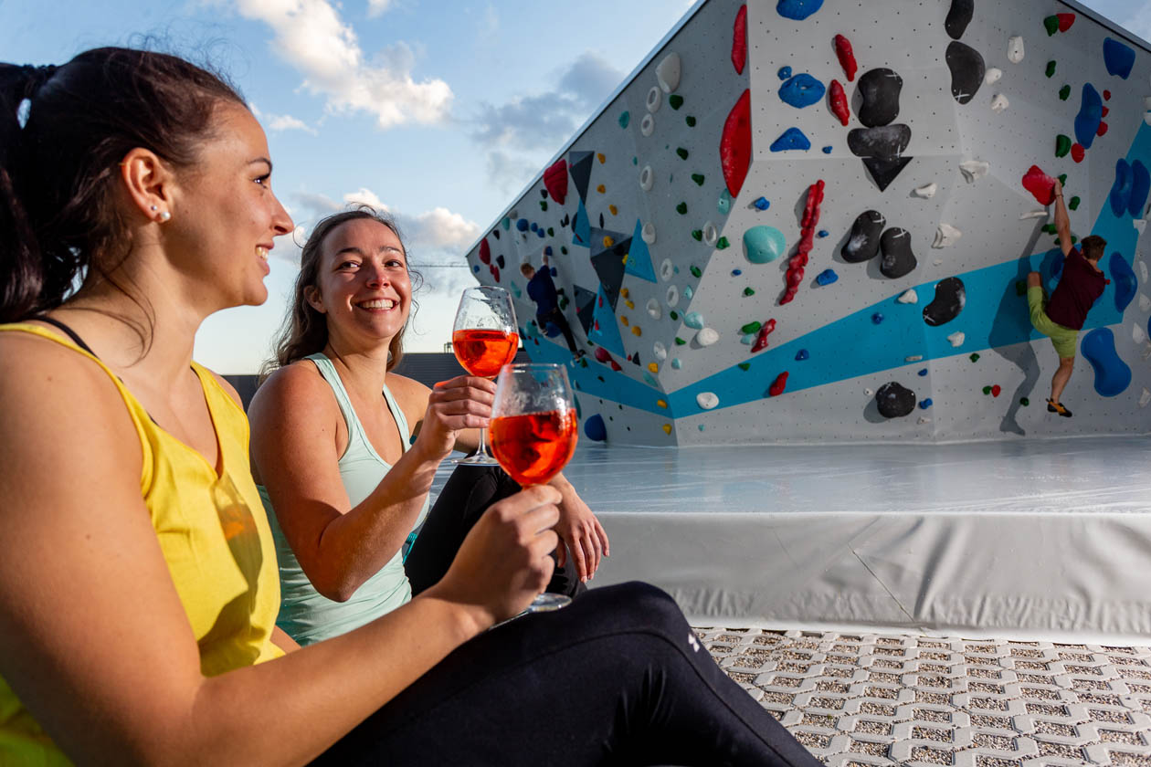 Bouldern und Klettern auf dem Outddor Block im Außenbereich der Boulderwelt München Ost