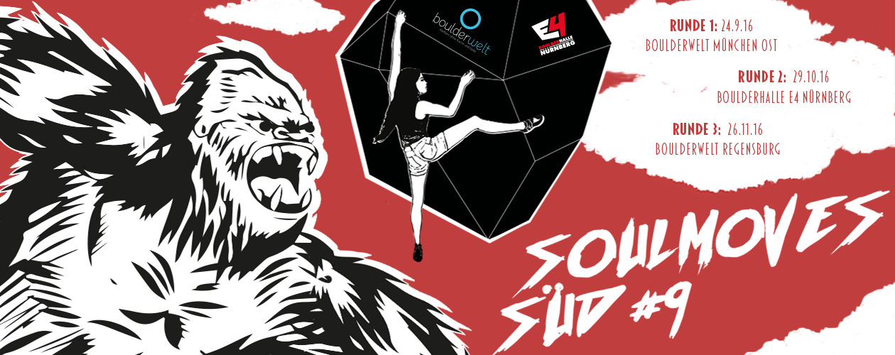 Ihr könnt Euch ab sofort online für die erste Runde in der Boulderwelt München Ost bis zum einschl. 22.9.16 online voranmelden unter: www.boulderwelt-muenchen-ost.de/veranstaltung/soulmoves-9-anmeldung/