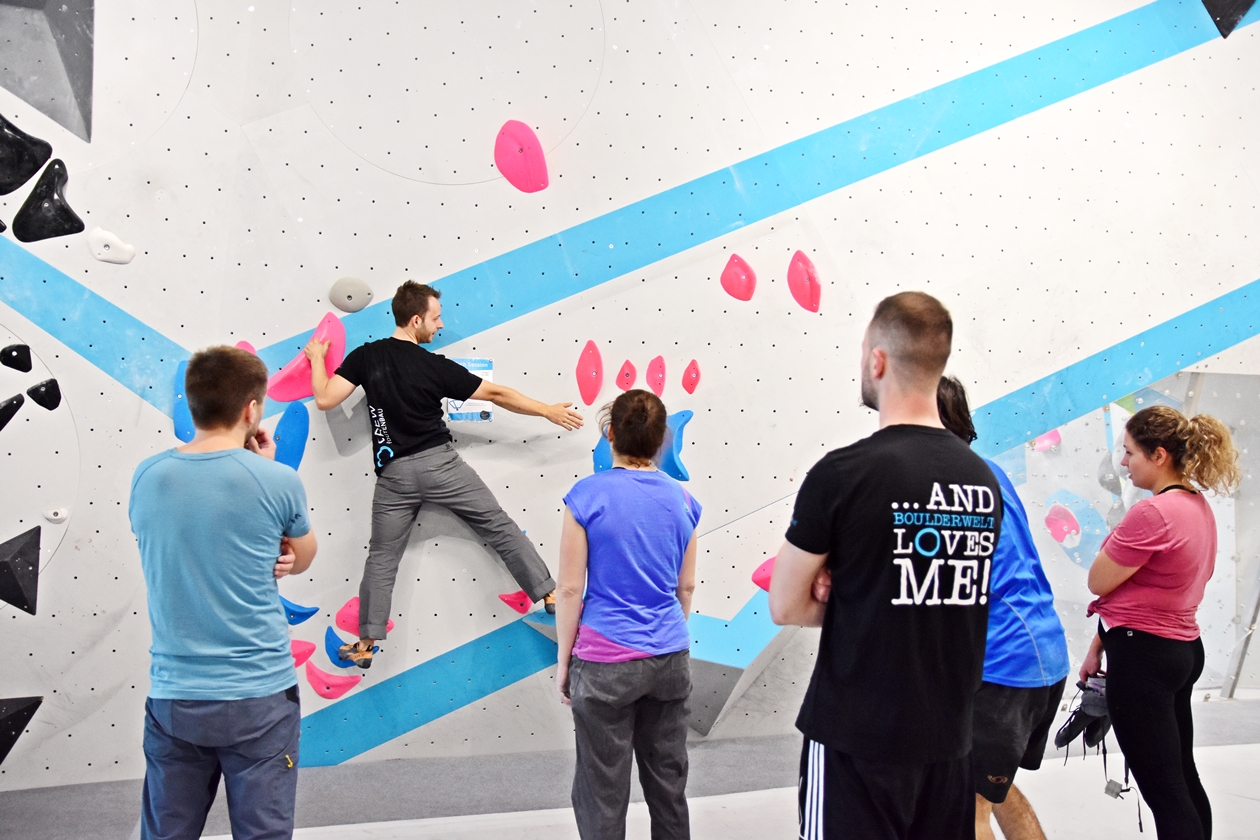 Bei der Tech Session in der Boulderwelt München Ost betreuten Routenbau und Trainer Crew Euch an verschiedenen Technik Stationen.